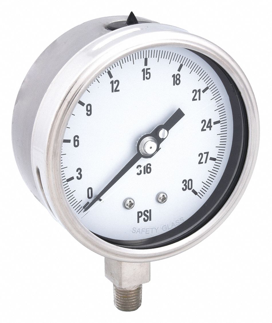 PIC Gauges Pressure Gauge 31/2" Dial Dia, 30 to 150 psi, 1/4" MNPT