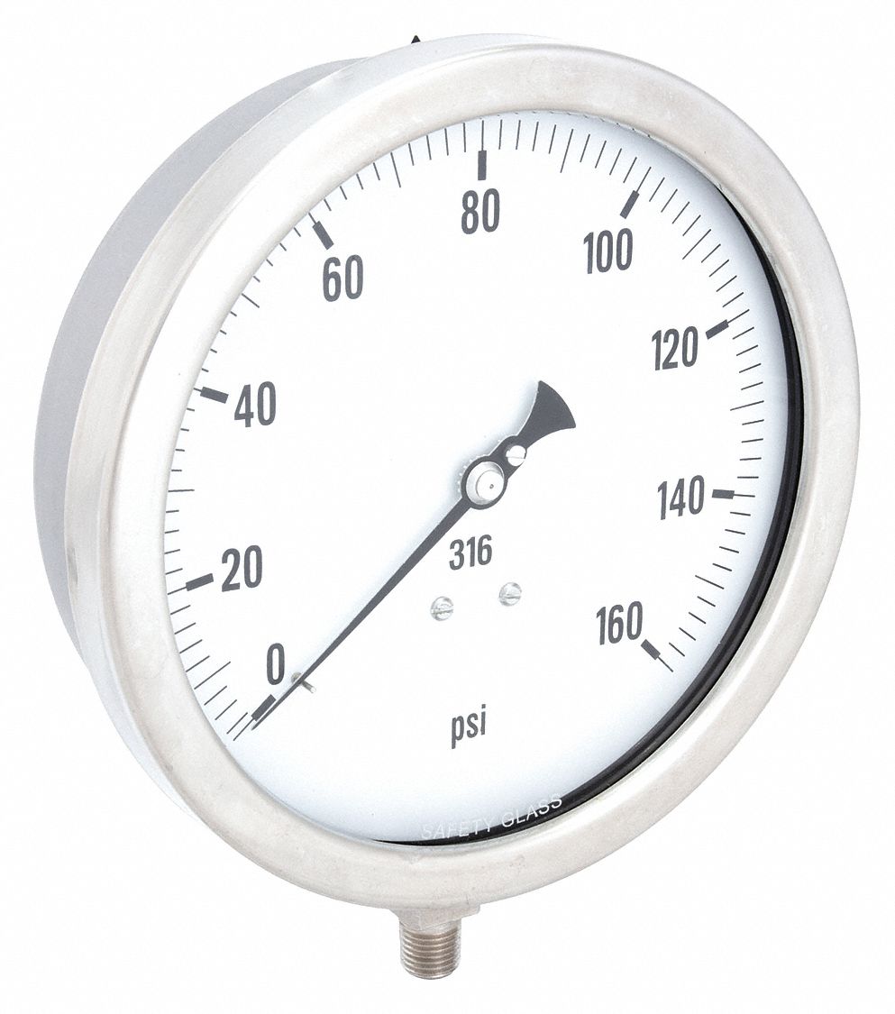 PIC GAUGES, 160 psi to 0 psi / Hg to 160 psi, 6 in Dial, Industrial