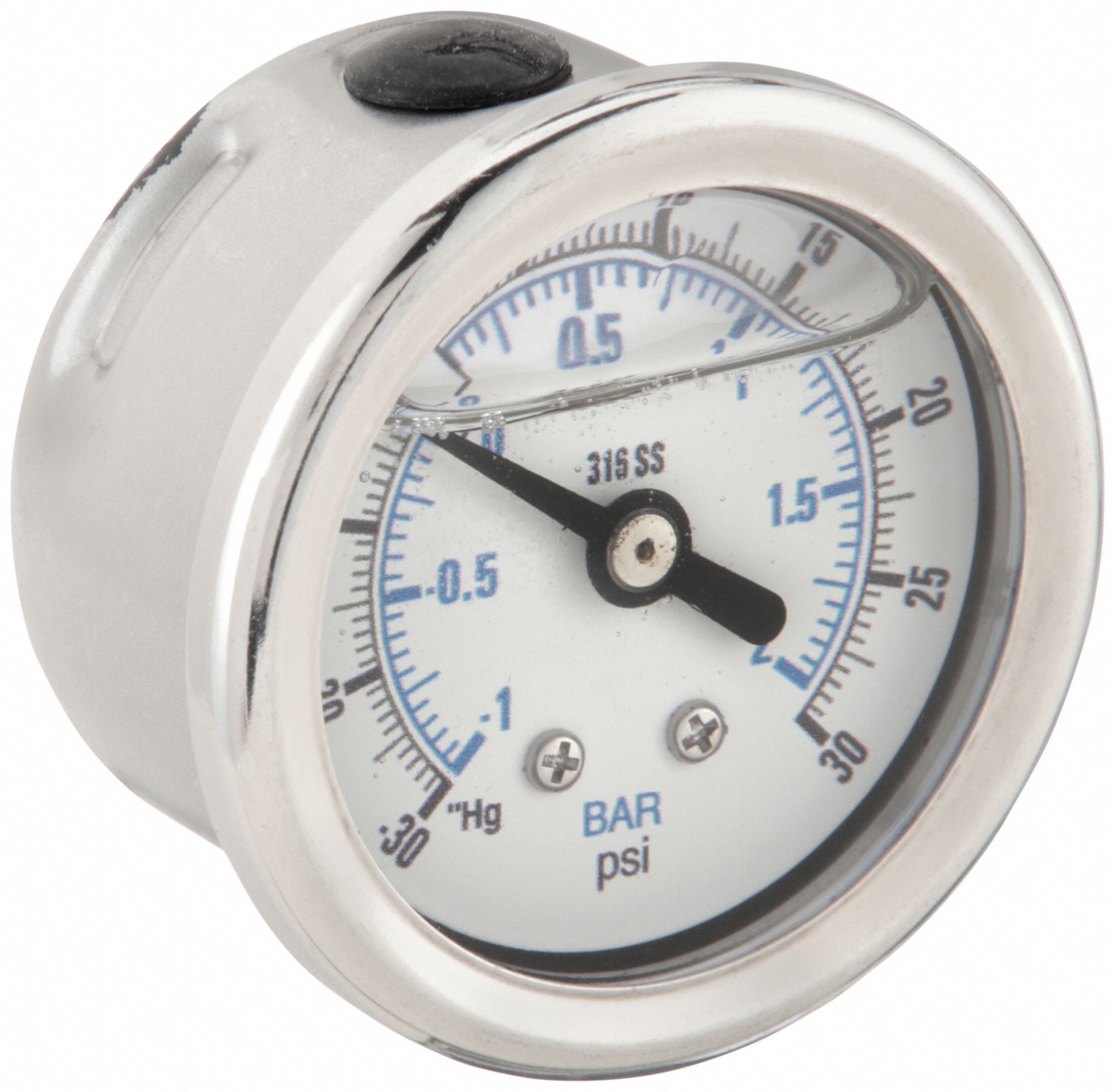 PIC GAUGES, 30 psi to 0 psi / Hg to 30 psi, 1 1/2 in Dial, Industrial
