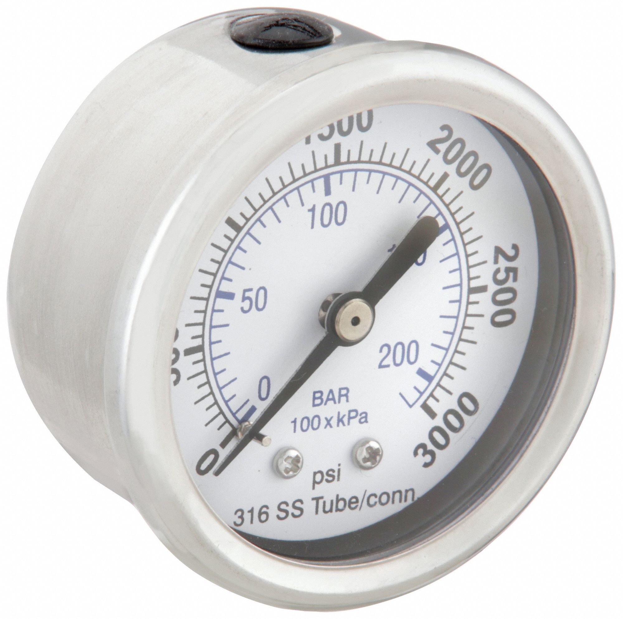 PIC GAUGES, 3,000 psi to 0 psi / Hg to 3,000 psi, 2 1/2 in Dial