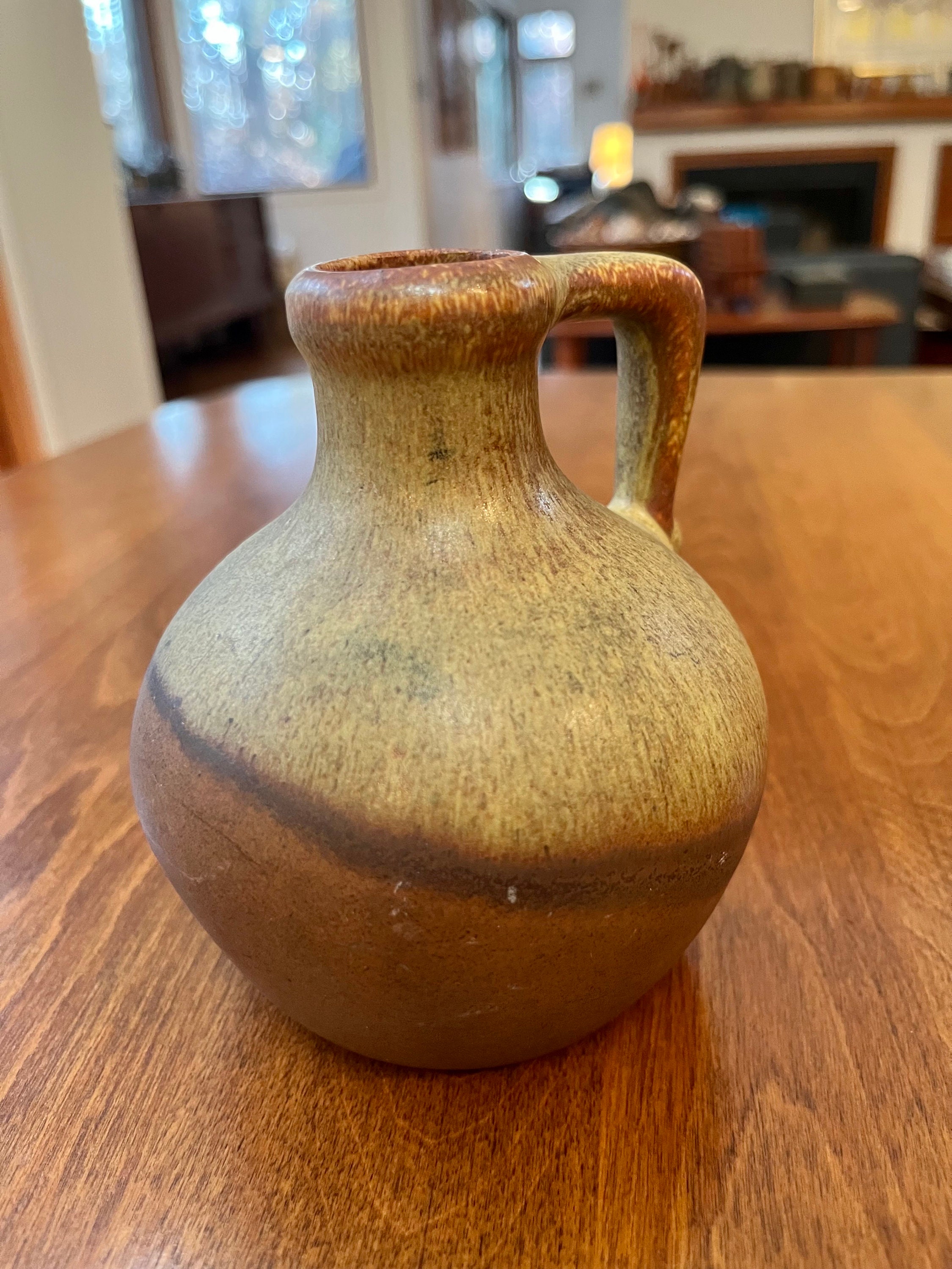 Pigeon Pottery Vintage Ceramic Brown and Olive Glaze Pitcher