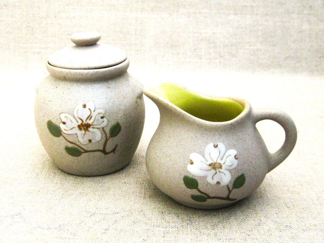 Vintage Pigeon Pottery Sugar and Creamer Set, Pair Entertaining