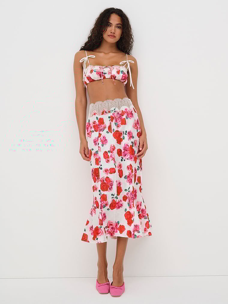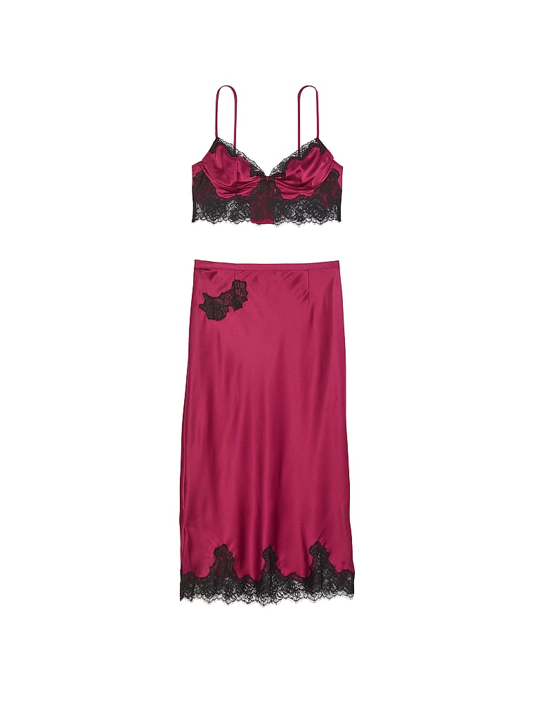 Buy Satin Rose LaceTrim Bralette & Midi Skirt Set, Campari Red Order
