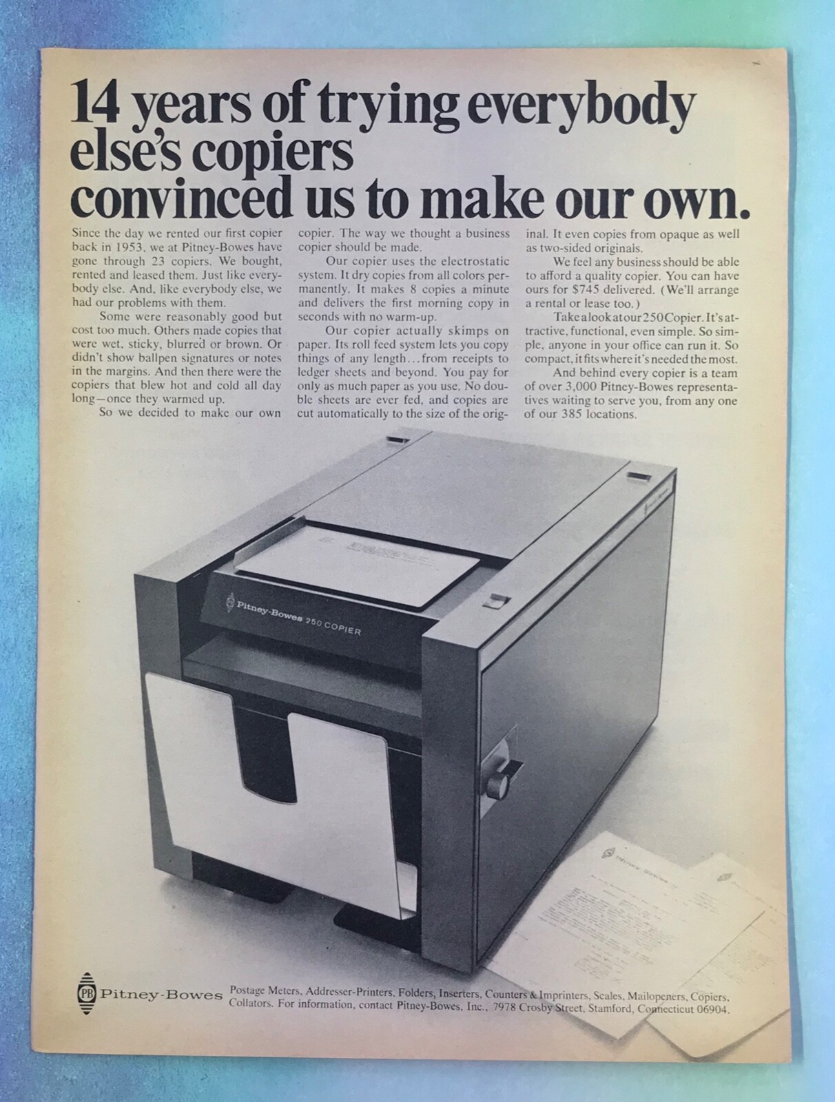 vintage 1960s magazine print ad PITNEYBOWES Office Equipment COPIERS