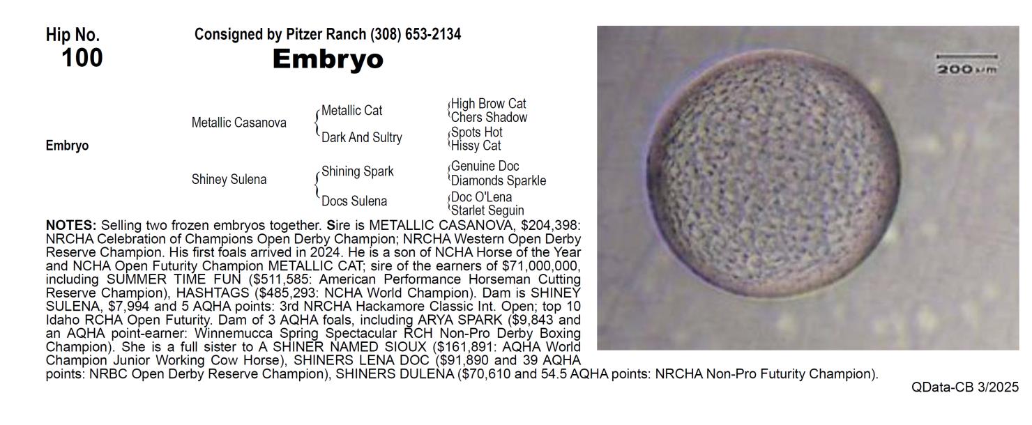 Lot 100 Pitzer Ranch Preview at 7am CT followed by 9am CT Spring