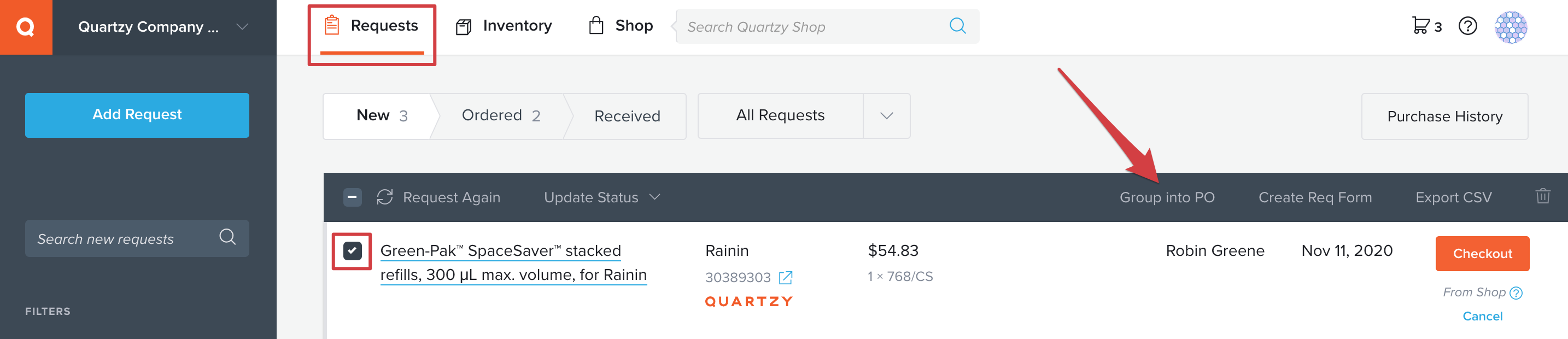 Purchase from Quartzy using a Purchase Order Quartzy Support