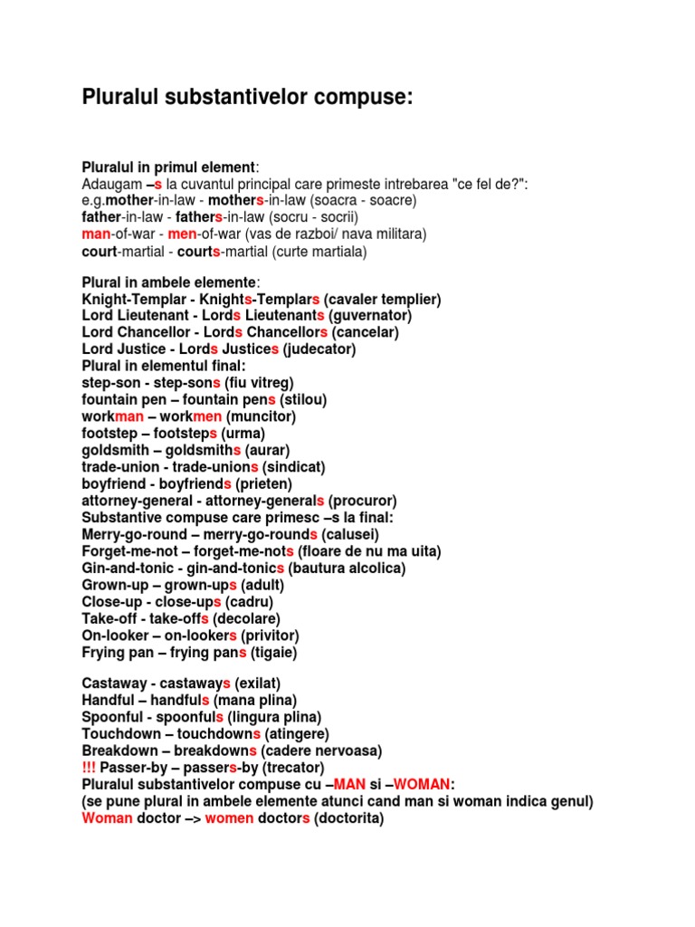 Pluralul Substantivelor Compuse PDF