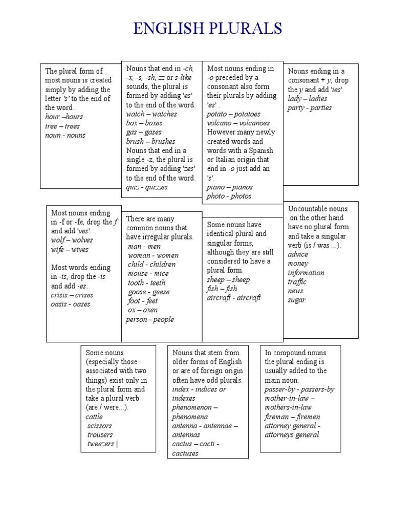Teacher Fun Files Plural Noun Rules And Examples Chart, 57 OFF