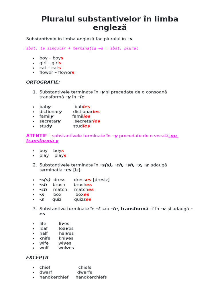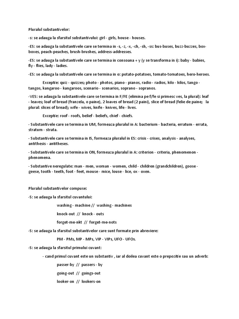 Pluralul substantivelor în limba engleză PDF