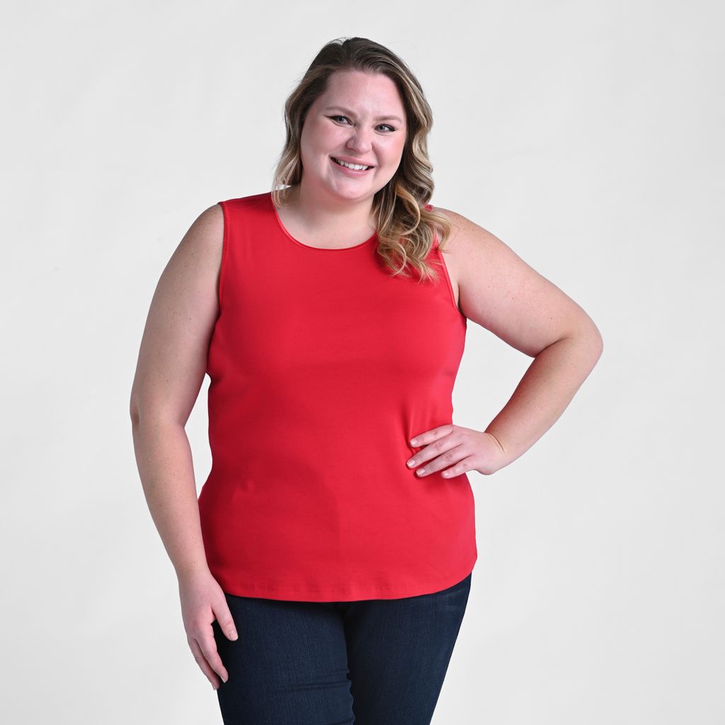 Sleeveless Crew Neck Satin Trim Plus Size Perfect Tank Christopher