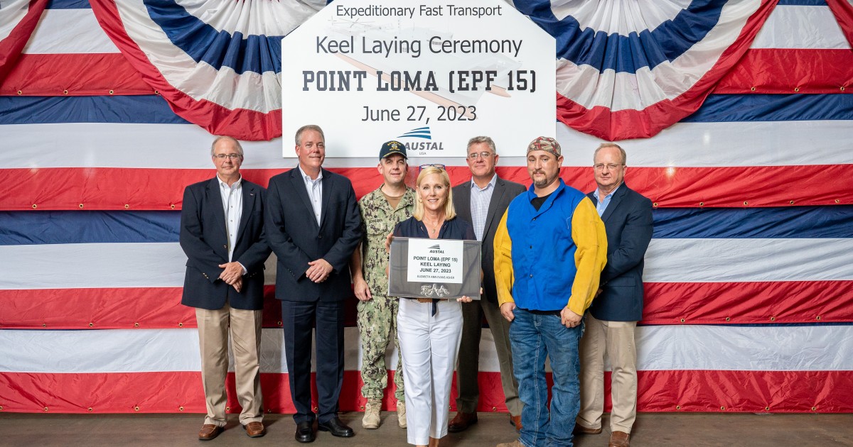 Austal USA celebrates keel laying for the future USNS Point Loma (EPF