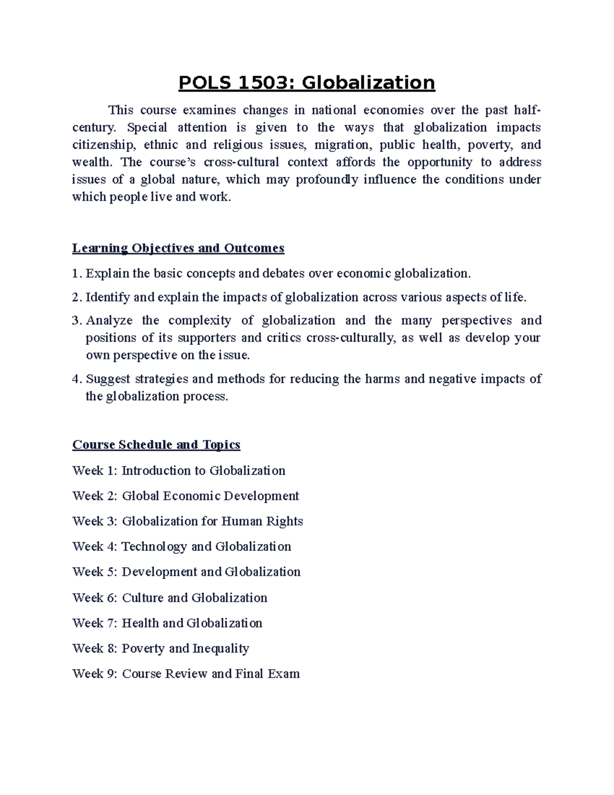POLS 1503 (Course Info) POLS 1503 Globalization This course examines