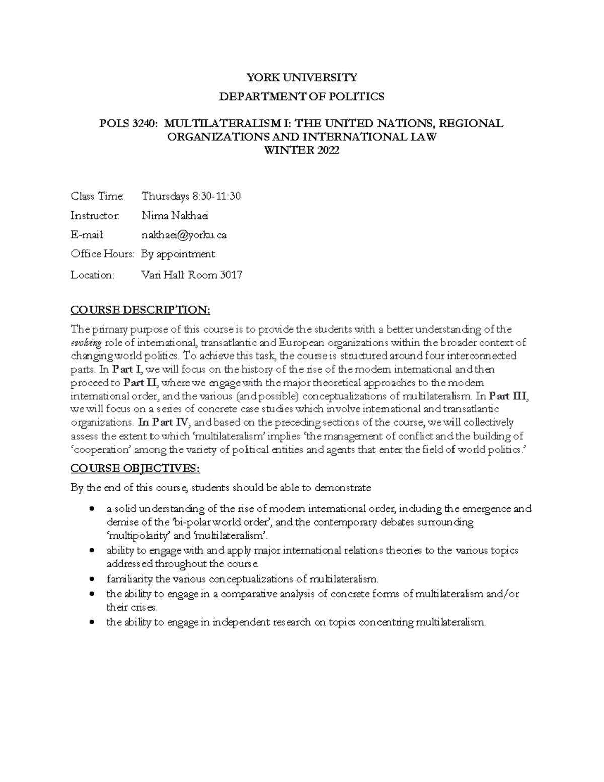 POLS 3240 Course Outline for winter spring 2021/22 YORK UNIVERSITY