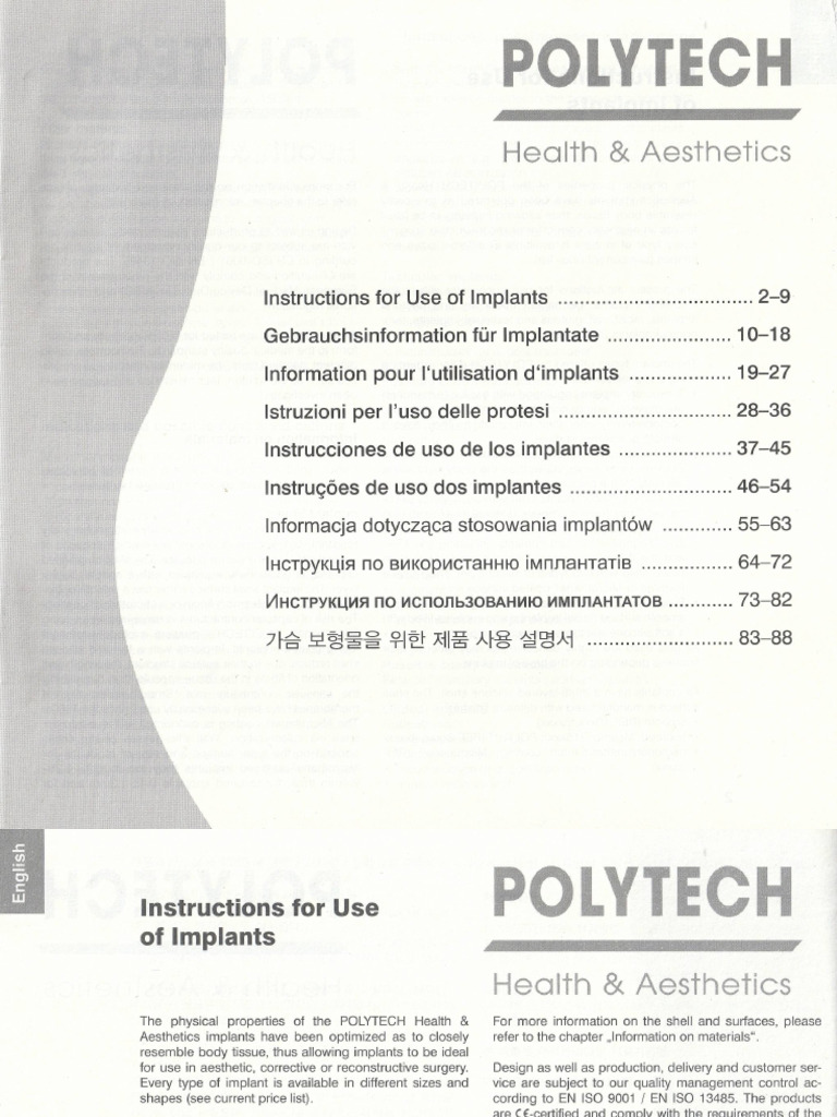 Instructions For Use of Polytech Breast Implants Manual (Multilingual