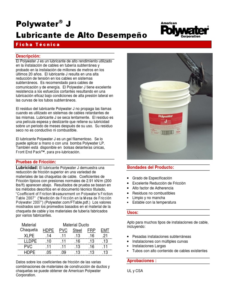 Ficha Tecnica Lubricante J Polywater PDF Lubricante Tubería
