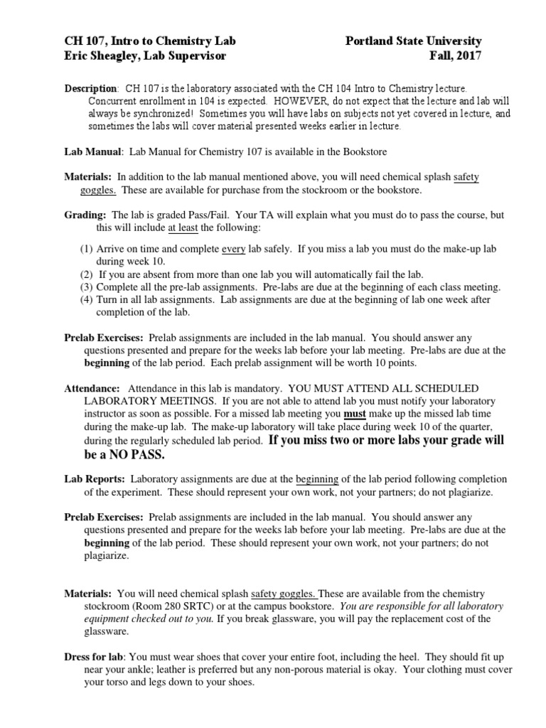 Undergraduate Programs in Chemistry and Biochemistry Portland State