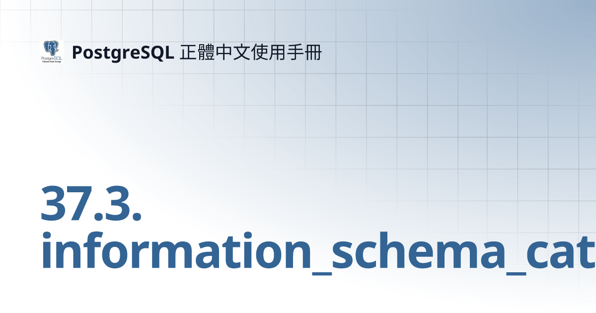37.3. information_schema_catalog_name PostgreSQL 正體中文使用手冊