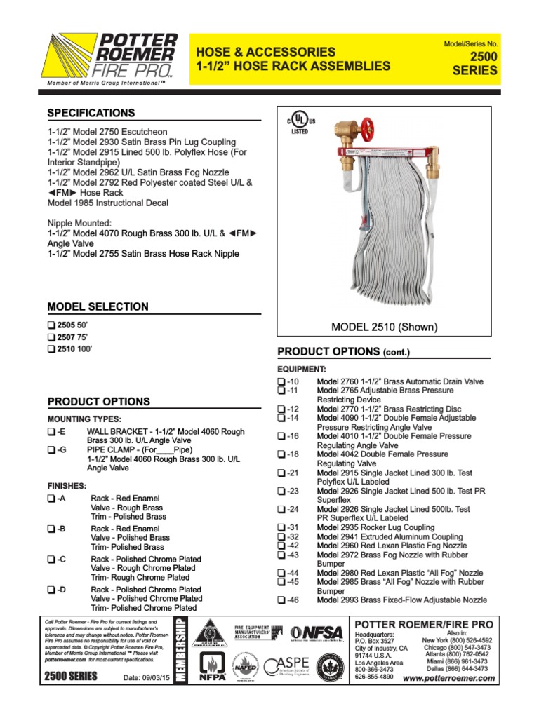 POTTER ROEMER 2510 Hose Rack Assemblies 11/2"x100ft