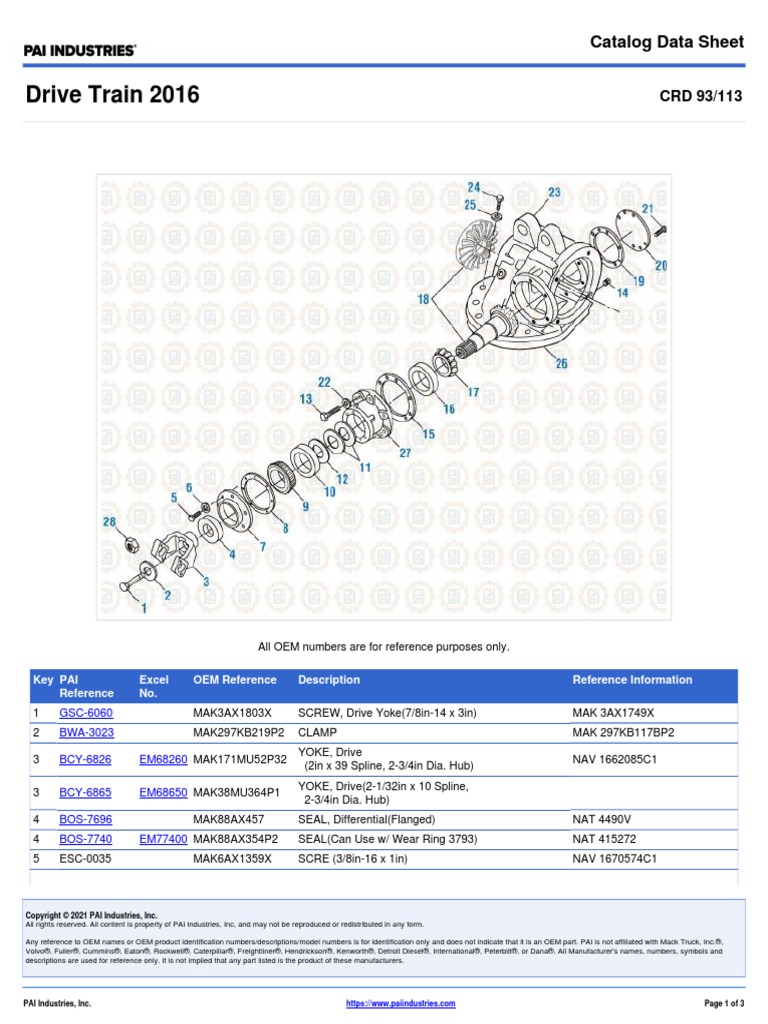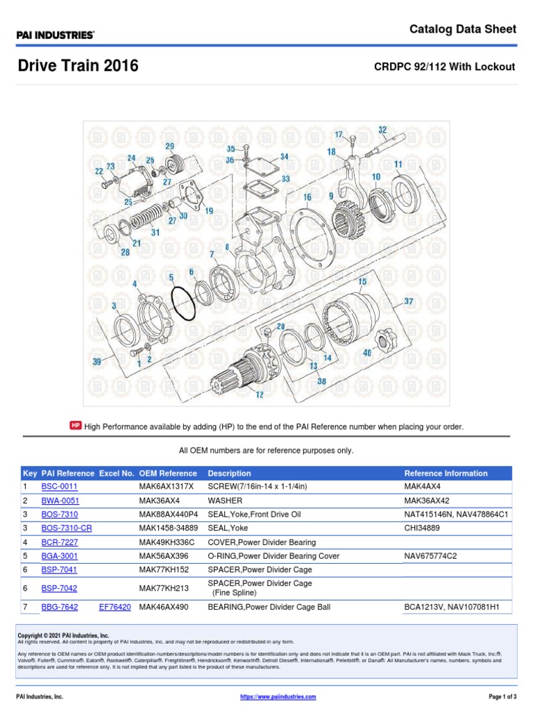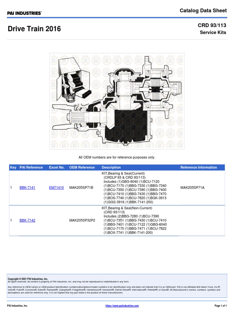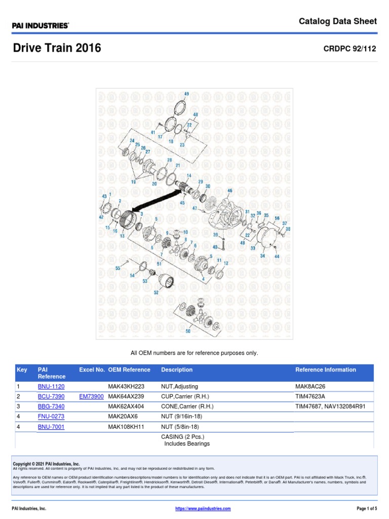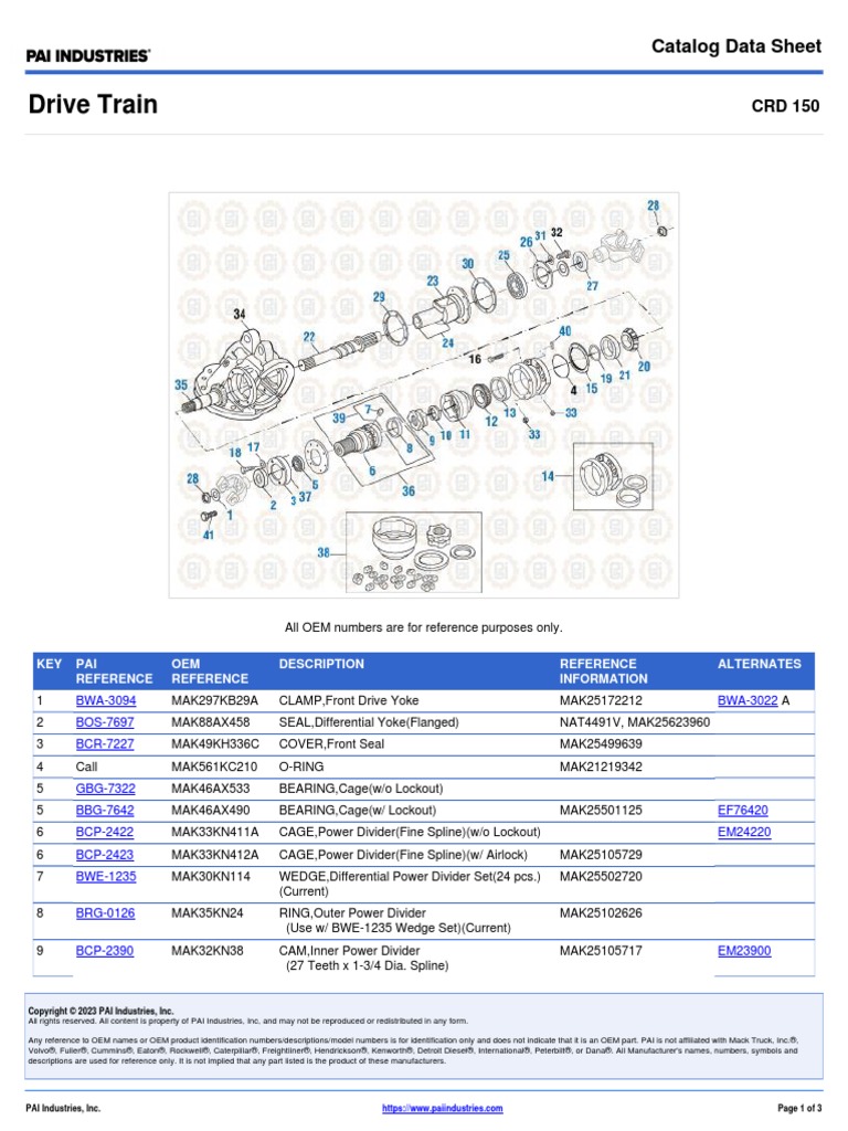 Pai Catalog Sheet 1203 CRD150 PDF Gear Vehicles