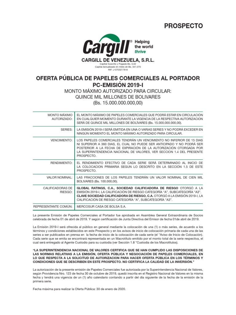 Prospecto Cargill PPCC 2019 Descargar gratis PDF Bolsa Sociedad