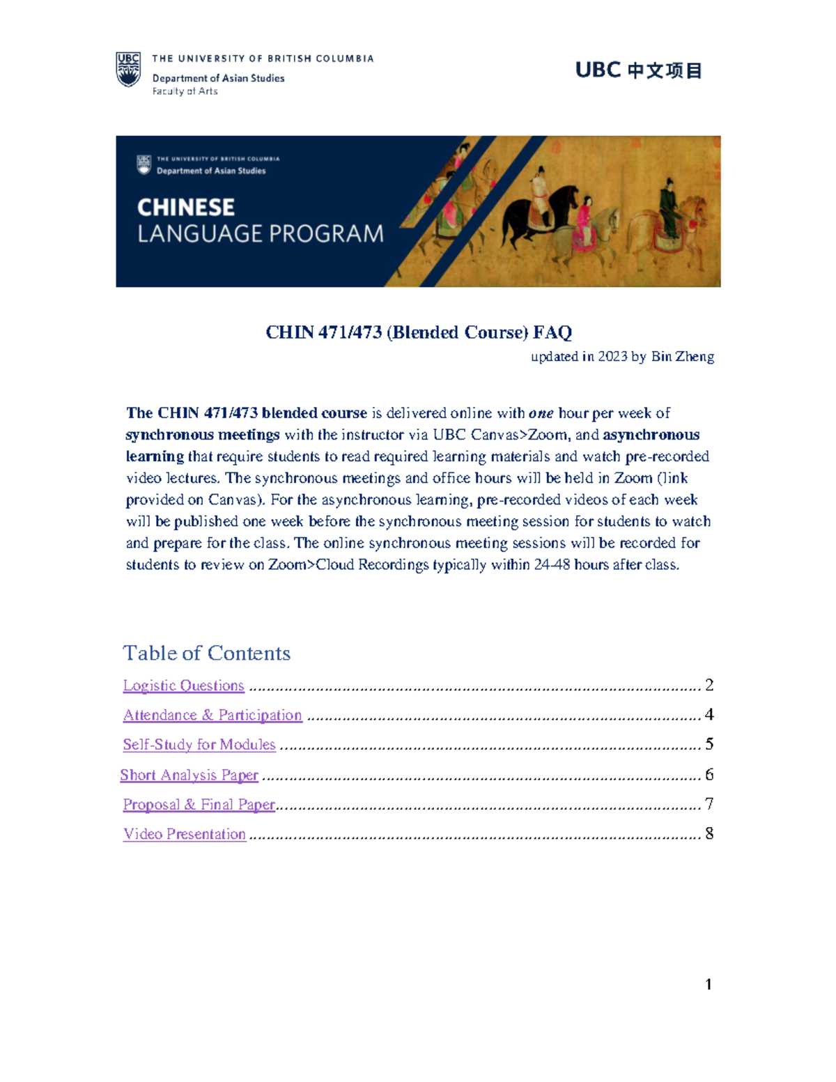 CHIN 471 473 (Blended Course) FAQ CHIN 471 / 473 (Blended Course) FAQ