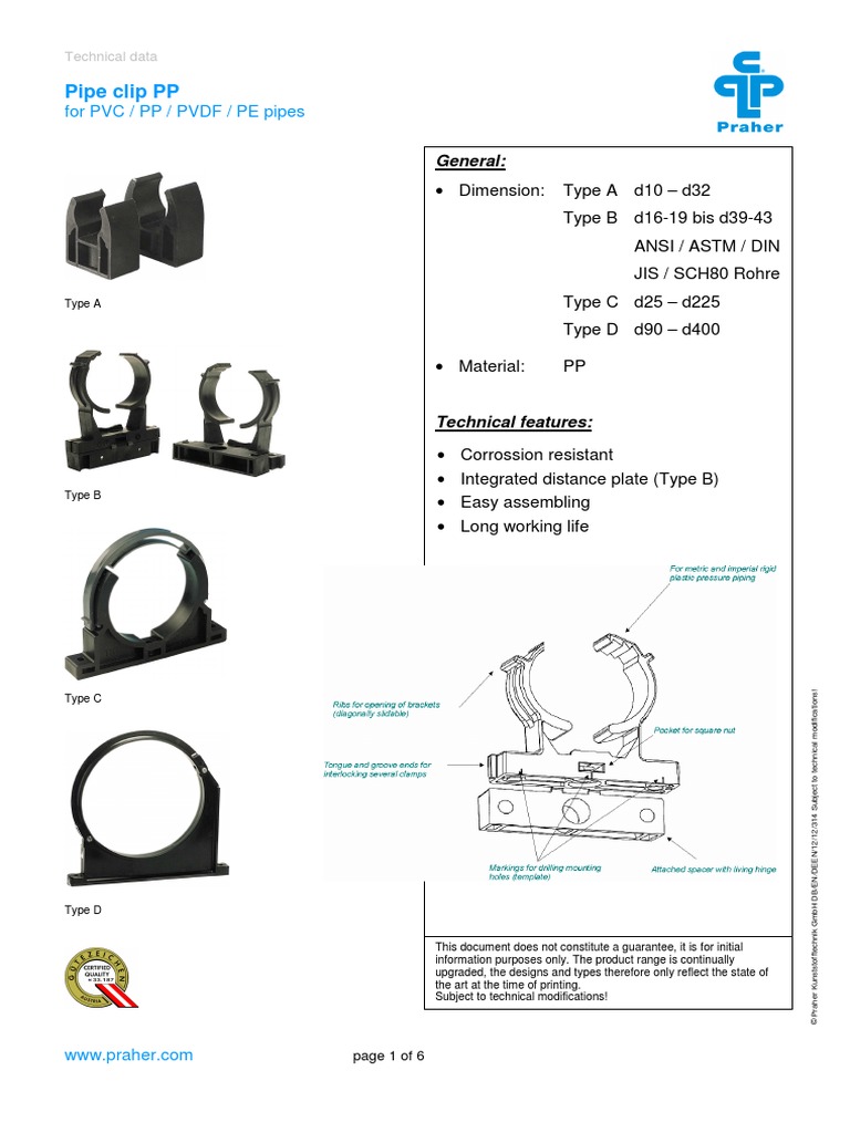 Praher Pipe Clips PP PDF Pipe (Fluid Conveyance) Civil Engineering