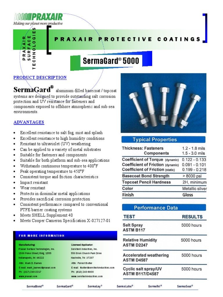 Praxair Product Data Sheet SermaGard 5000 PDF
