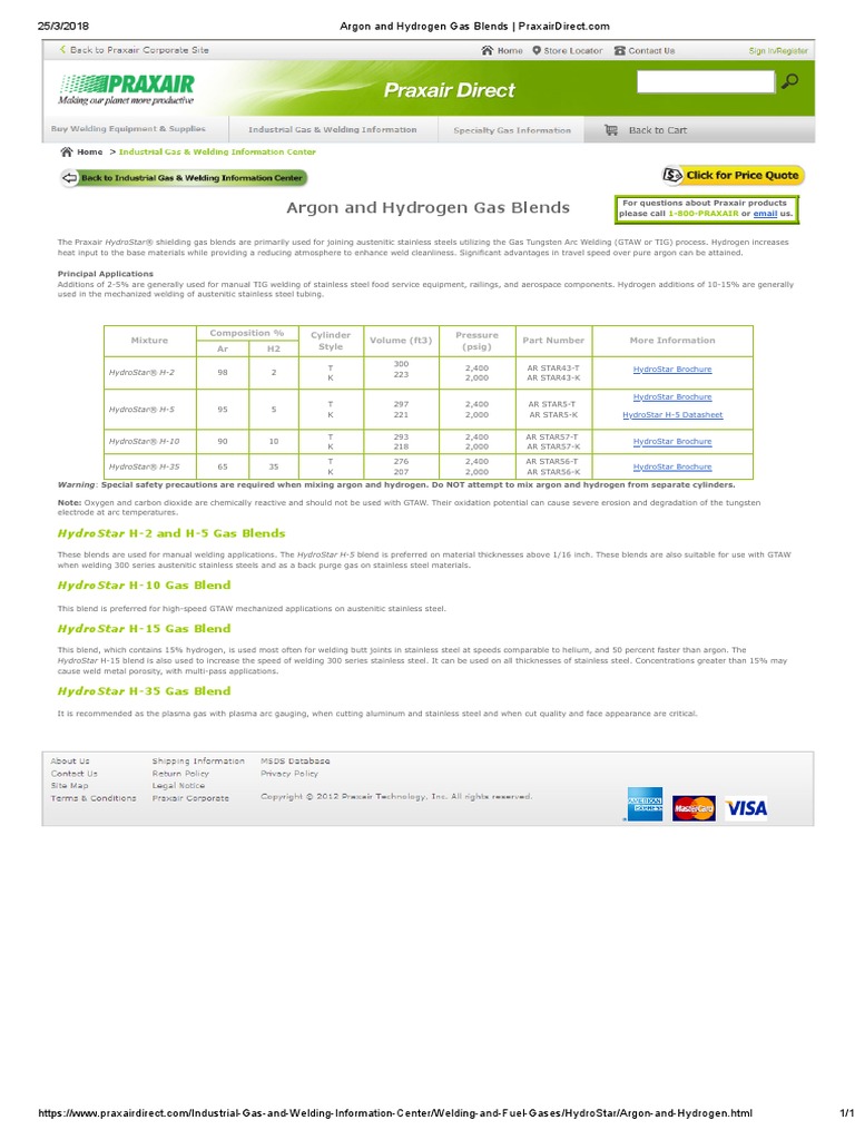 (Praxair) Argon and Hydrogen Gas Blends PDF Argon Welding