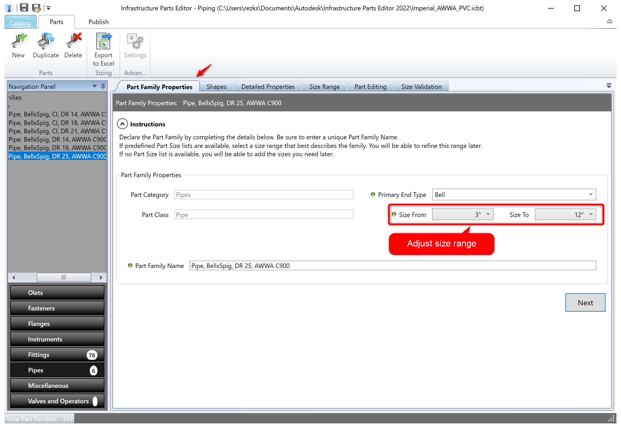 AutoCAD Civil 3D Tip PVC, HDPE and Steel pressure pipe parts catalogs