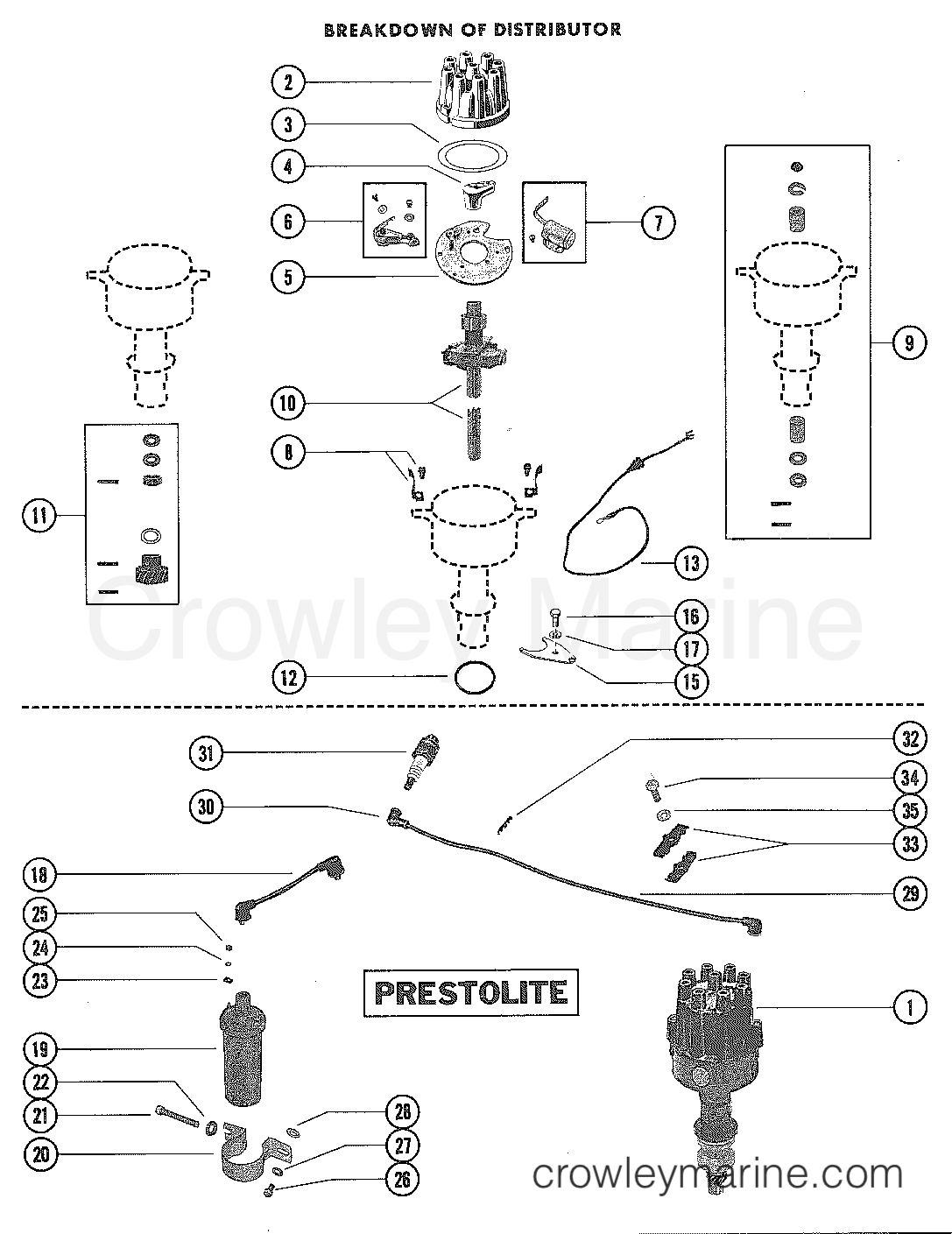 DISTRIBUTOR ASSEMBLY PRESTOLITE Serial Range Stern Drive 233 FORD 351