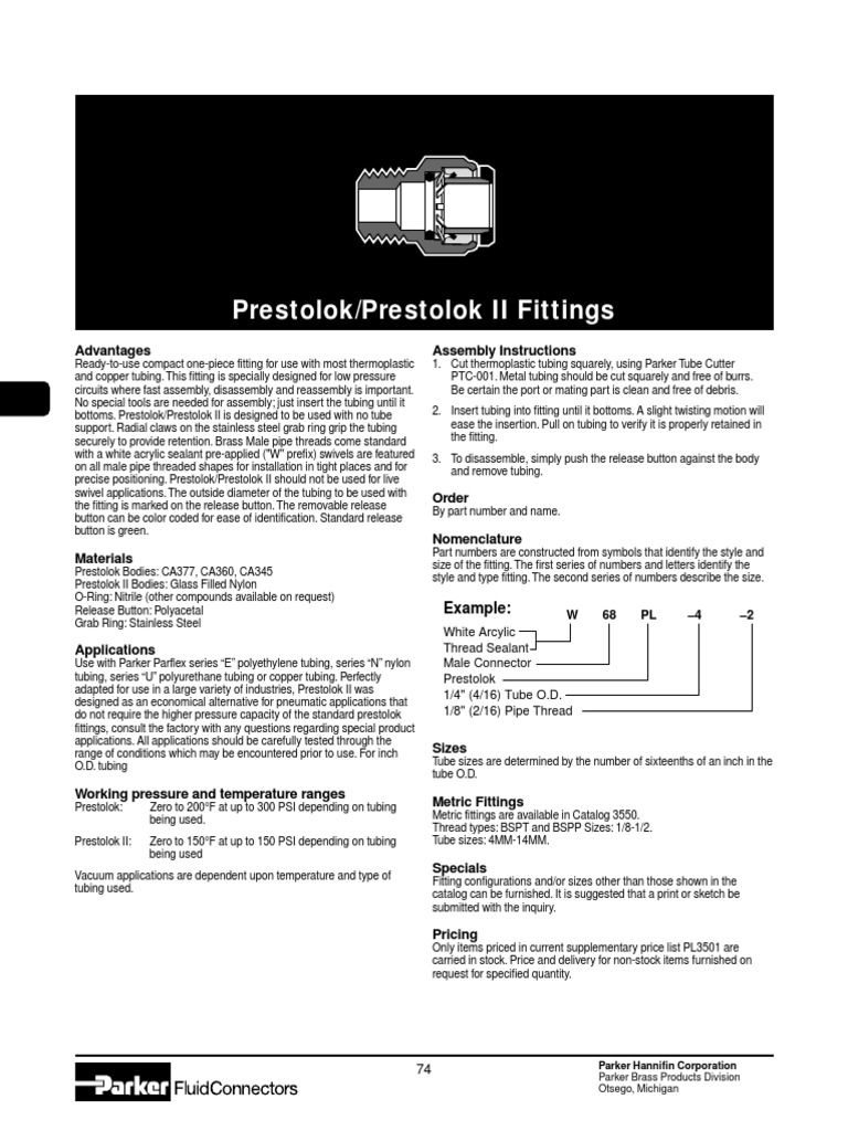 Parker Prestolok PLP Metal PushtoConnect Fittings U.S. Plastic Corp.