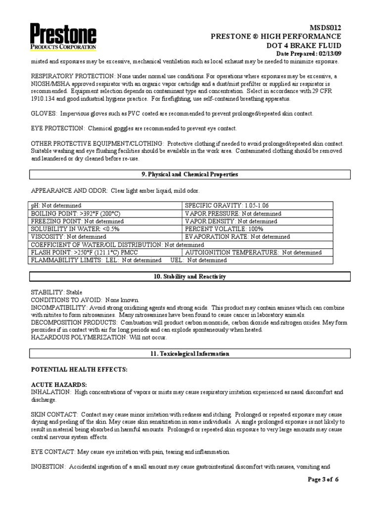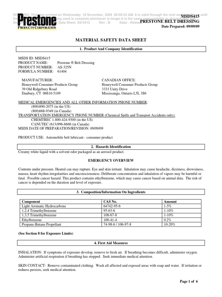 Msds Prestone Belt PDF Firefighting Combustion
