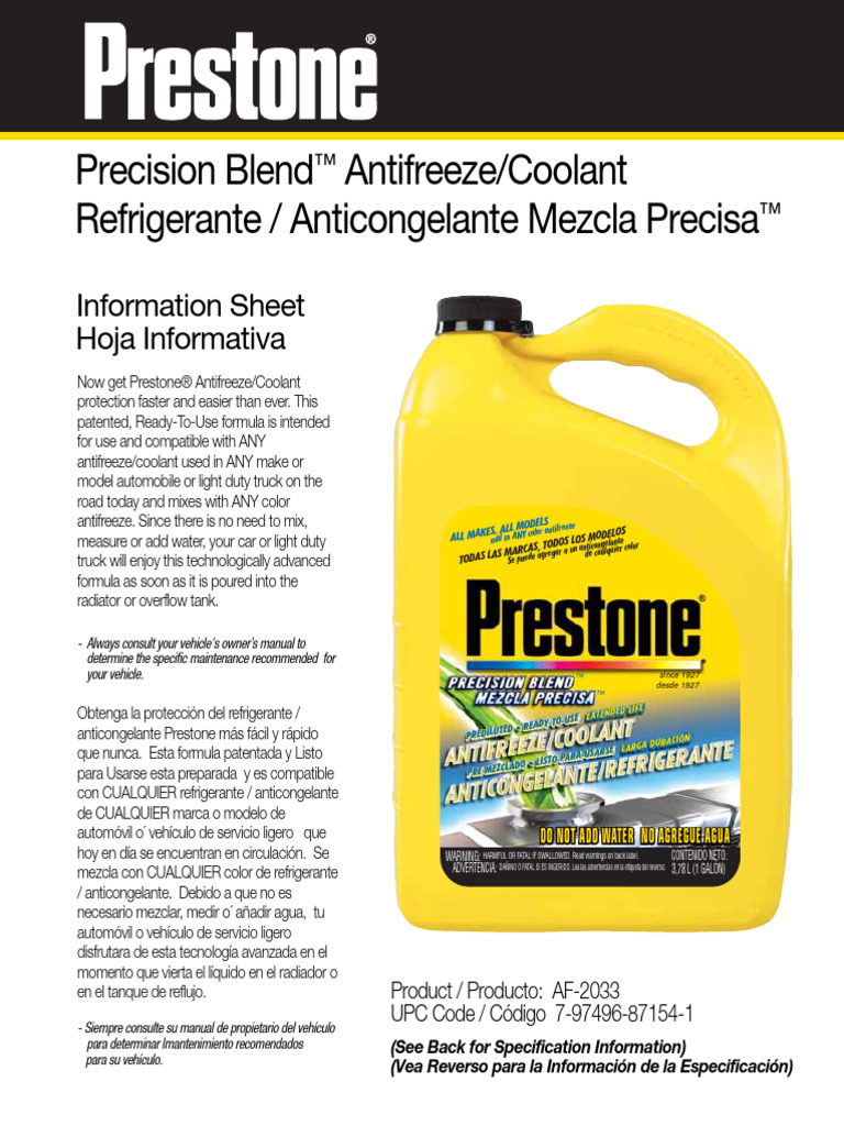 Prestone AF2033 Sale Sheet PDF Ingeniería electromecánica Química