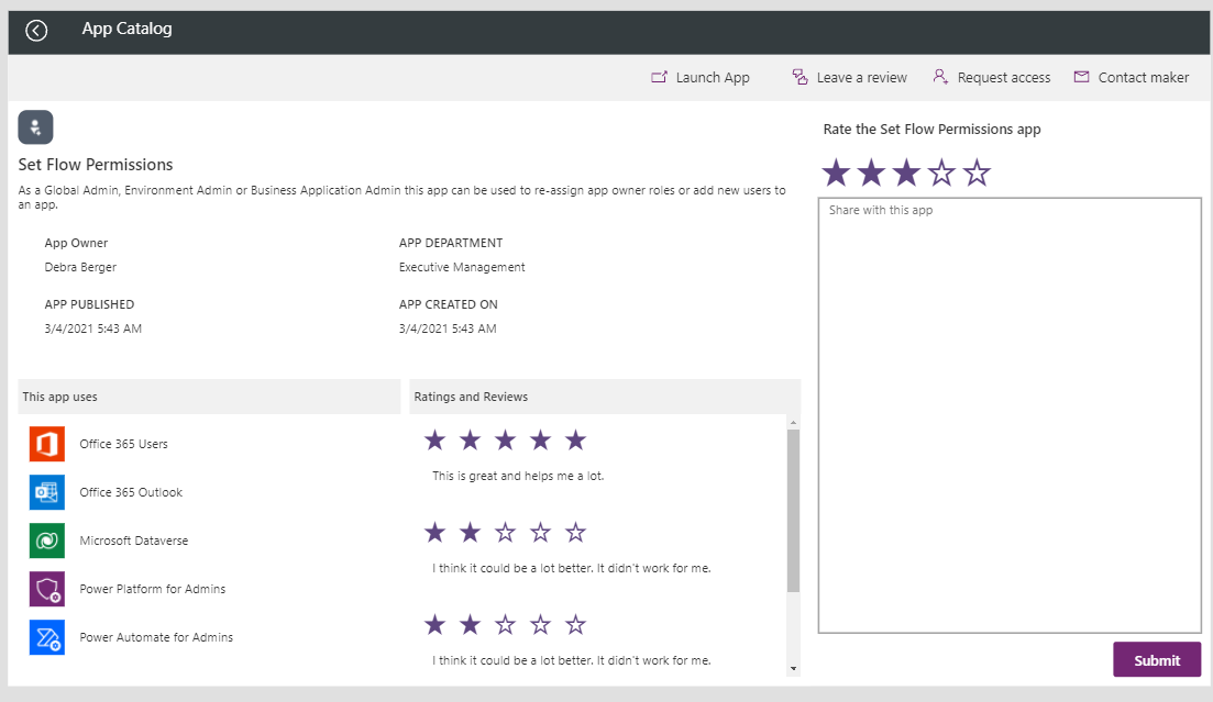 ![[CoE Starter Kit] App Catalog update with feedback option and other](https://user-images.githubusercontent.com/55705669/138311708-dcc703ca-5893-40d7-8f1d-92007cb870a5.png)