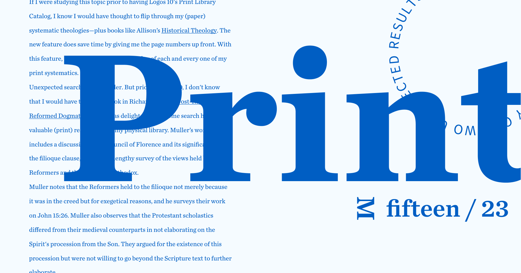 2 Unexpected Results from Logos 10’s Print Library Catalog Tool