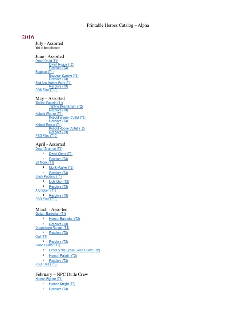 PrintableHeroes Catalogue PDF Dungeons & Dragons Creatures