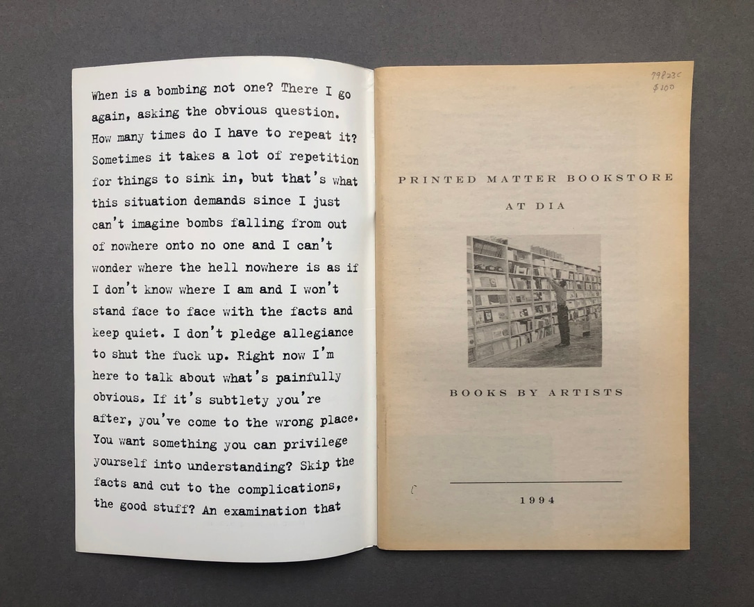 Printed Matter Bookstore at Dia Spring 1991 Catalog Printed Matter