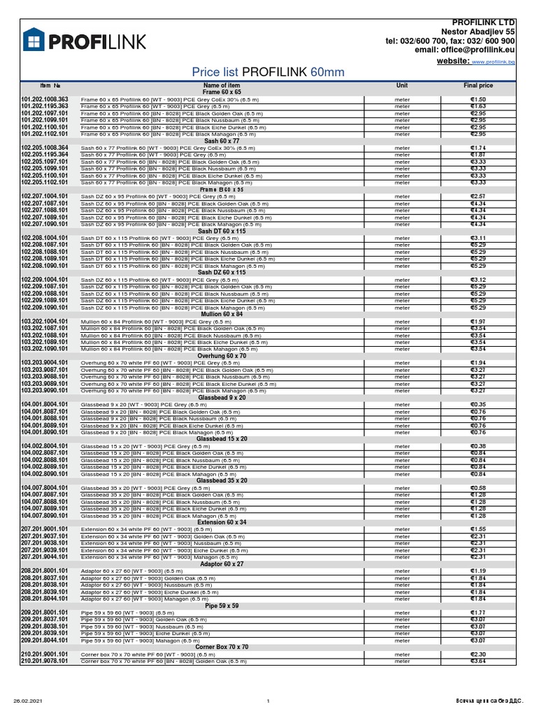 Special Price List Profilink PVC TC Construct 60 MM Main Wharehaus PDF