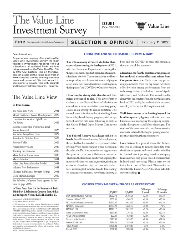 The Value Line Investment Survey Selection & Opinion Product Guide