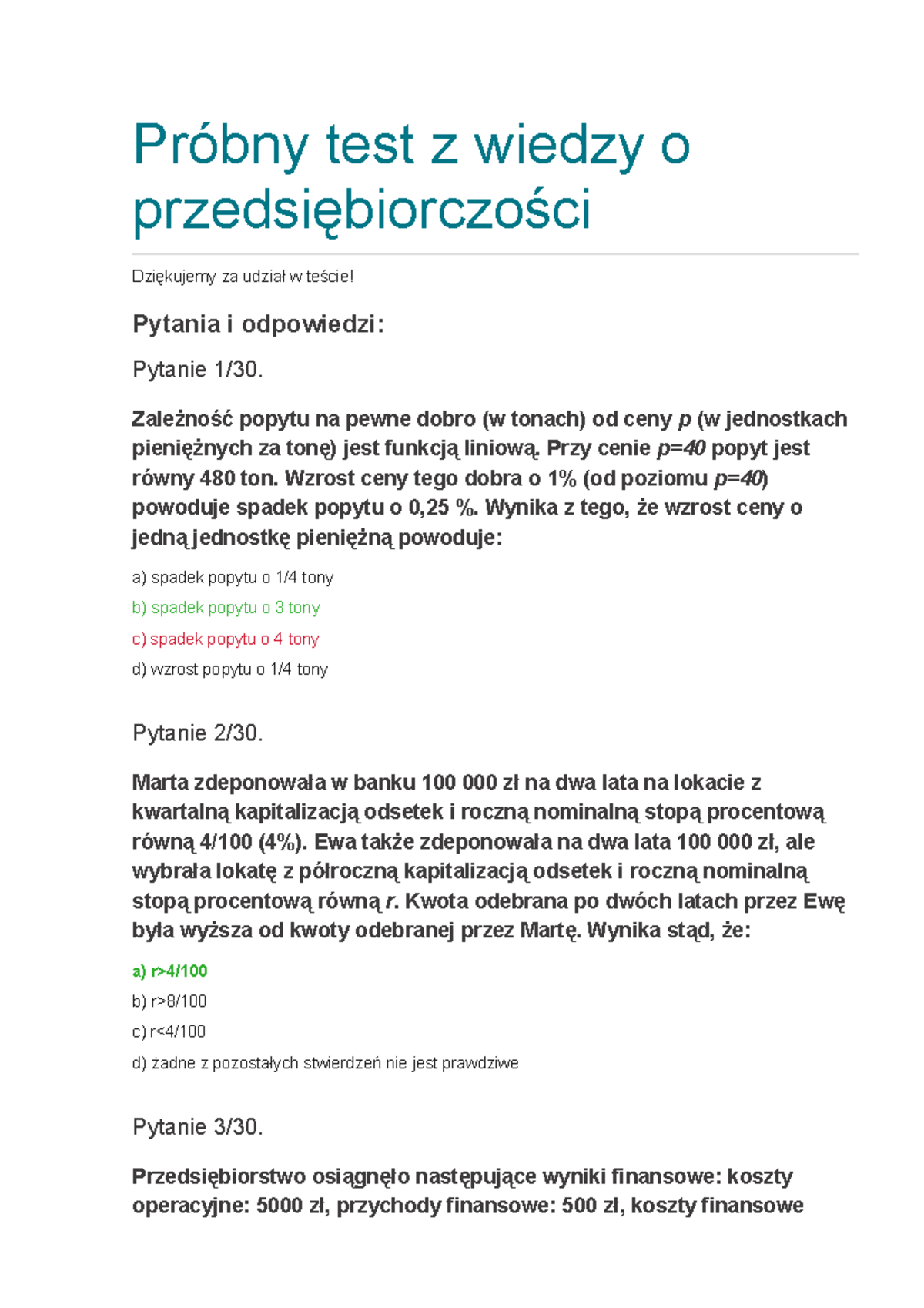 Próbny test z wiedzy o przedsiębiorczości PDEL 2023 Studocu