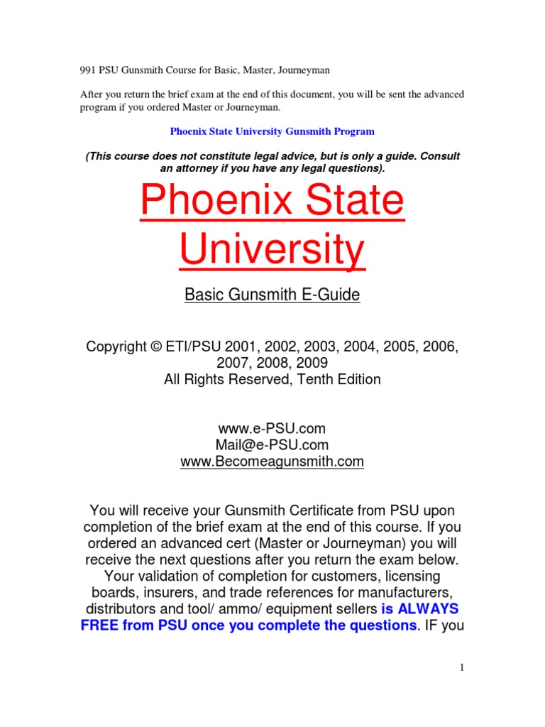 991 PSU Gunsmith Course For Basic Master Journeyman PDF Minute And