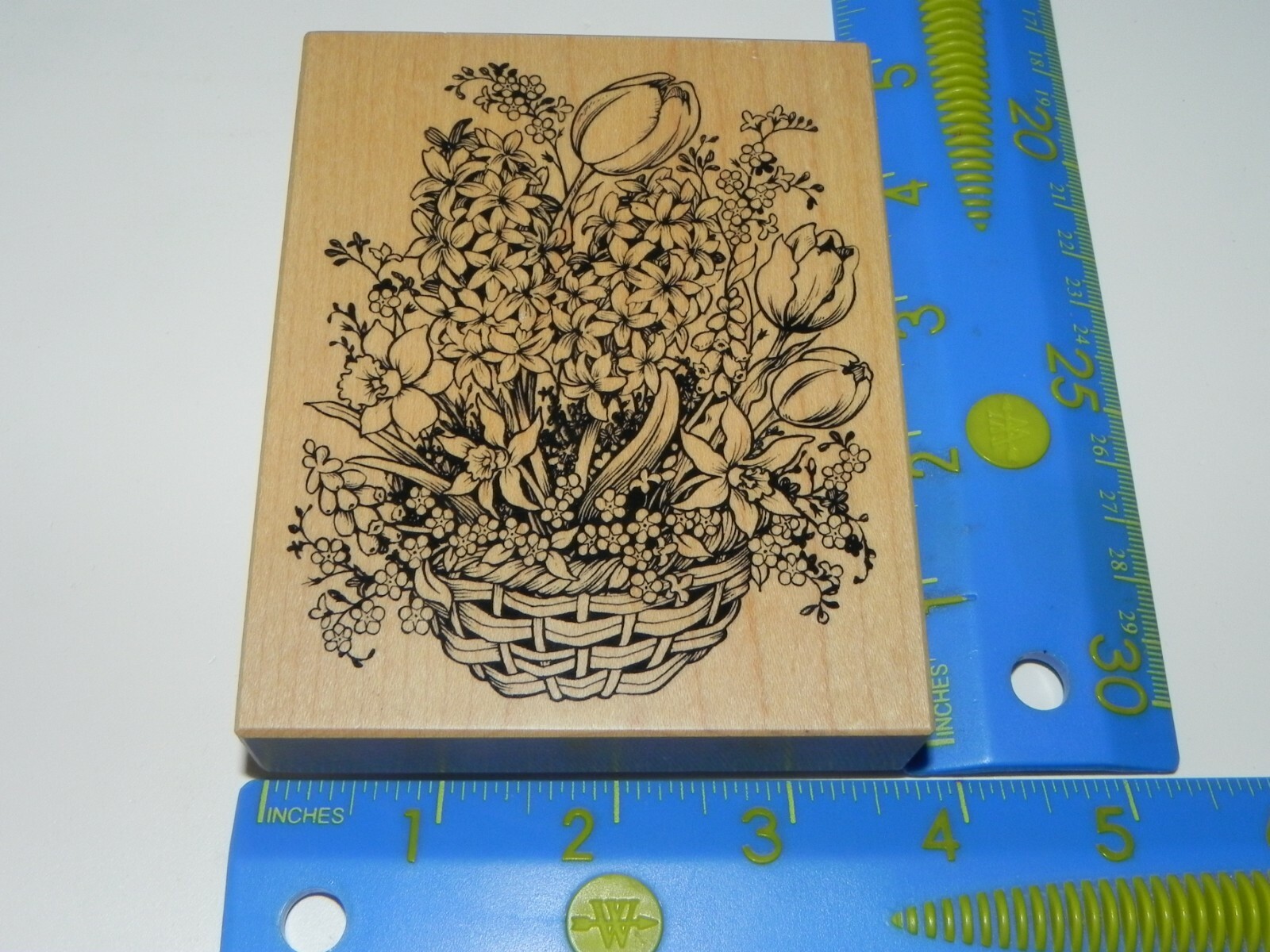 Vintage PSX Rubber Stamps Wood Blocks Featuring Basket Leaf Feather