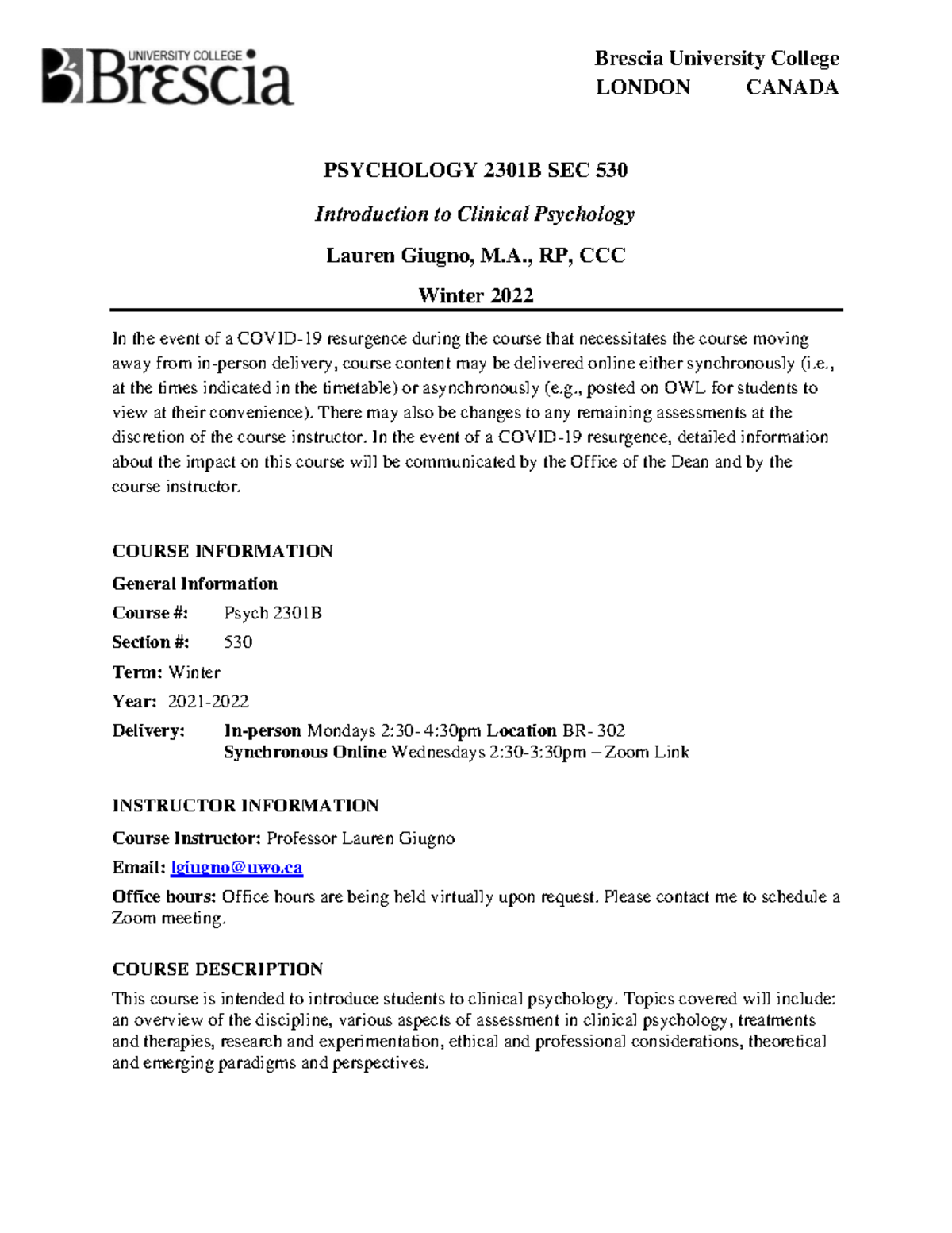 20212022+Psych+2301B+503+Course+syllabus Brescia University College
