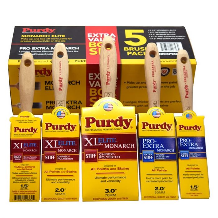 Purdy Pro Extra & XL Monarch Paint Brush Set (5 Pack) Decorating