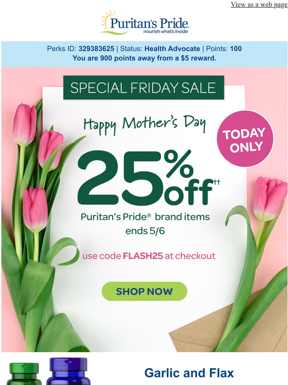 Puritan's Pride ONE DAY ONLY 25 OFF your order Milled