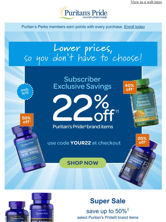 Puritan's Pride Subscriber Exclusive— 22 off entire order 3 days only