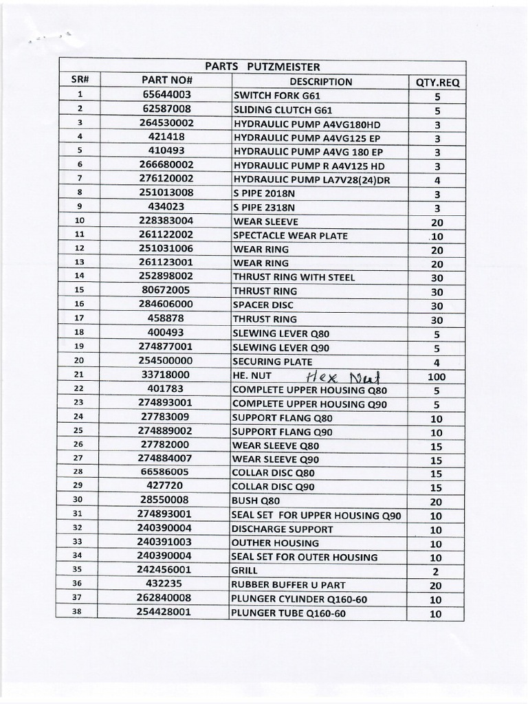 Putzmeister Number list.2 CZIC GROUPPUMP PARTS