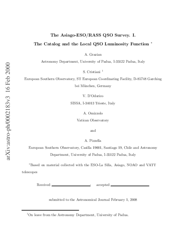 (PDF) The AsiagoESO/RASS QSO Survey. I. The Catalog and the Local QSO