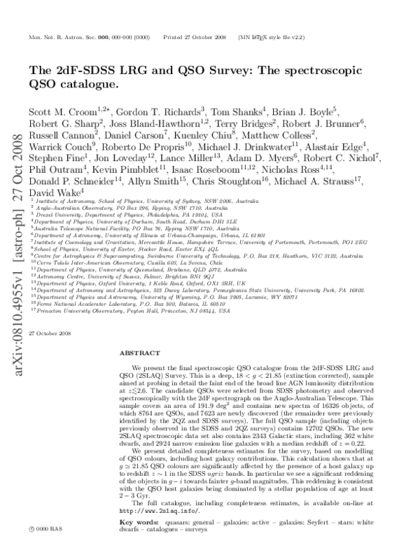 (PDF) The 2dFSDSS LRG and QSO Survey the spectroscopic QSO catalogue