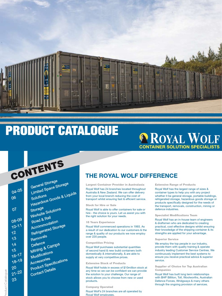 Royal Wolf Product Catalogue PDF Industries Transport